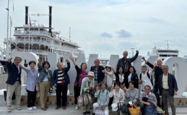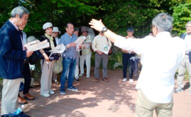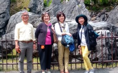 < 琵琶湖疎水に沿って三井寺を目指します2019年にも歩きましたが、メンバーが増えました疎水の途中で集合写真大門(仁王門)しばし休憩>